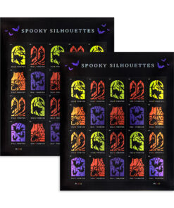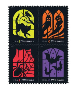 As autumn approaches. these new stamps offer fun. frightful scenes that symbolize Halloween. With customs and traditions that vary widely by community. Halloween now inspires parades and carnivals. corn mazes. haunted houses. neighborhood and school parties. pumpkin festivals. and even pumpkin catapulting. Halloween remains a much anticipated celebration of the macabre in the face of approaching winter. Artist Tyler Lang worked with art director and designer Greg Breeding to create these stamps.