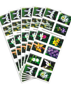 The Wild Orchids set includes 10 stamps picturing photographs by Jim Fowler of nine different orchids (one species shown twice) native to the United States. Species include the three birds (pictured twice). California lady’s slipper. crested coralroot. showy lady’s slipper. marsh lady’s tresses. eastern prairie fringed. greater purple fringed. grass pink. and yellow cowhorn orchids. These are all beautiful wildflowers that most people don’t get the opportunity to see. They’re all hard to find today.