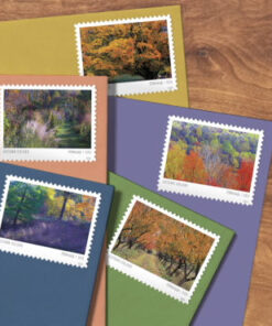 The pane of 20 stamps shows a portfolio of 10 brilliant photographs taken by renowned nature and garden photographer Allen Rokach (1941?C2021). Rokach often used what he called the ??Rokach effect.?? a technique that gives photos an impressionistic cast. In addition to the classic autumn colors of orange. red and yellow. the photographs show flashes of vermilion. ocher. violet and cobalt in different landscapes.