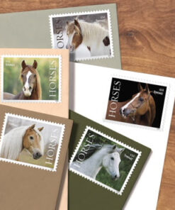 Dogs are often called man’s best friend; however. horses (Equus caballus) surely offer stiff competition for that distinctive honor. Known for their loyalty. hard work. and steadfast character. horses have long been integral to American culture and society. Vital to the early economic development of the United States. they are now beloved companions and valued for their roles in sport and recreation. The U.S. Postal Service celebrates the timeless beauty of these remarkable animals with five stamps.